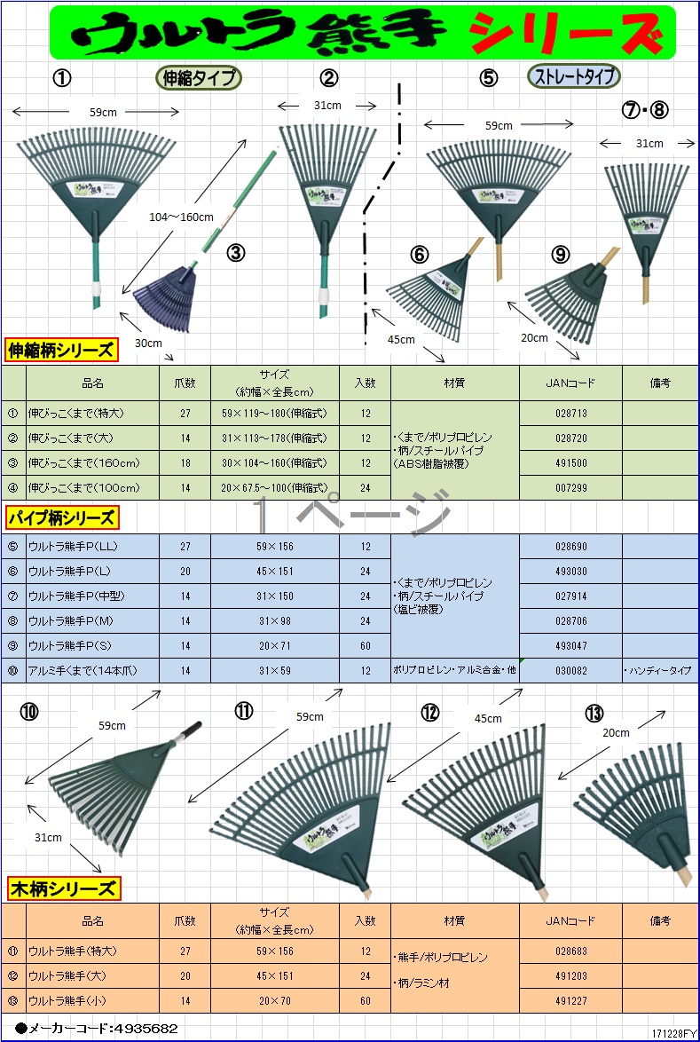 ・清掃用品(屋外清掃、屋内清掃、ホーキ、熊手、天井ホーキ、他)