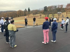 チャンピオンよりルール説明とライが悪い時の対処の仕方を教えていただきました。また、今年グレーチングに上がった人が落ちてしまったことに触れ、足元に注意してプレーするよう案内がありました。