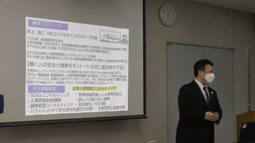 3月25日 18時より、三条商工会議所4階 研修室において、三条金物卸商協同組合主催による販路開拓推進事業セミナーを開催いたしました。講師に井上浩仁氏を迎え、「今なら間に合うSDGs ~企業価値を高めるために~」というタイトルで講演を開きました。講演の内容をYouTubeにアップいたしましたので、受講できなかったみなさんにはぜひともご覧いただき、企業経営にお役立てください。