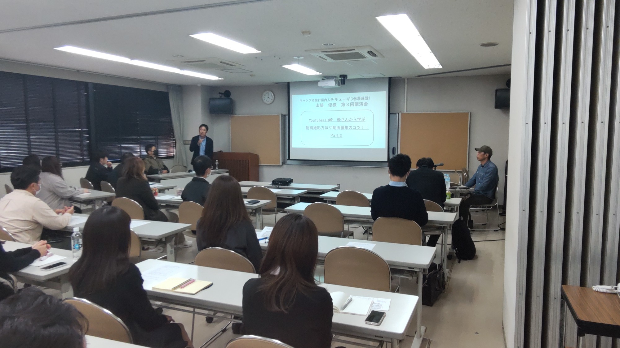 去る令和5年11月2日(木)16時より、【YouTuber山﨑優さんから学ぶ動画撮影方法や動画編集のコツ!!】の講演会が開催されました。今回で3回目となりました。第1回ではYouTubeの基礎となる全般のお話をいただきました。第2回では動画撮影のコツとして実際に商品を撮影する場を学ぶ事が出来ました。今回は第2回の時に撮影した動画の編集を学ぶ講演内容となりました。