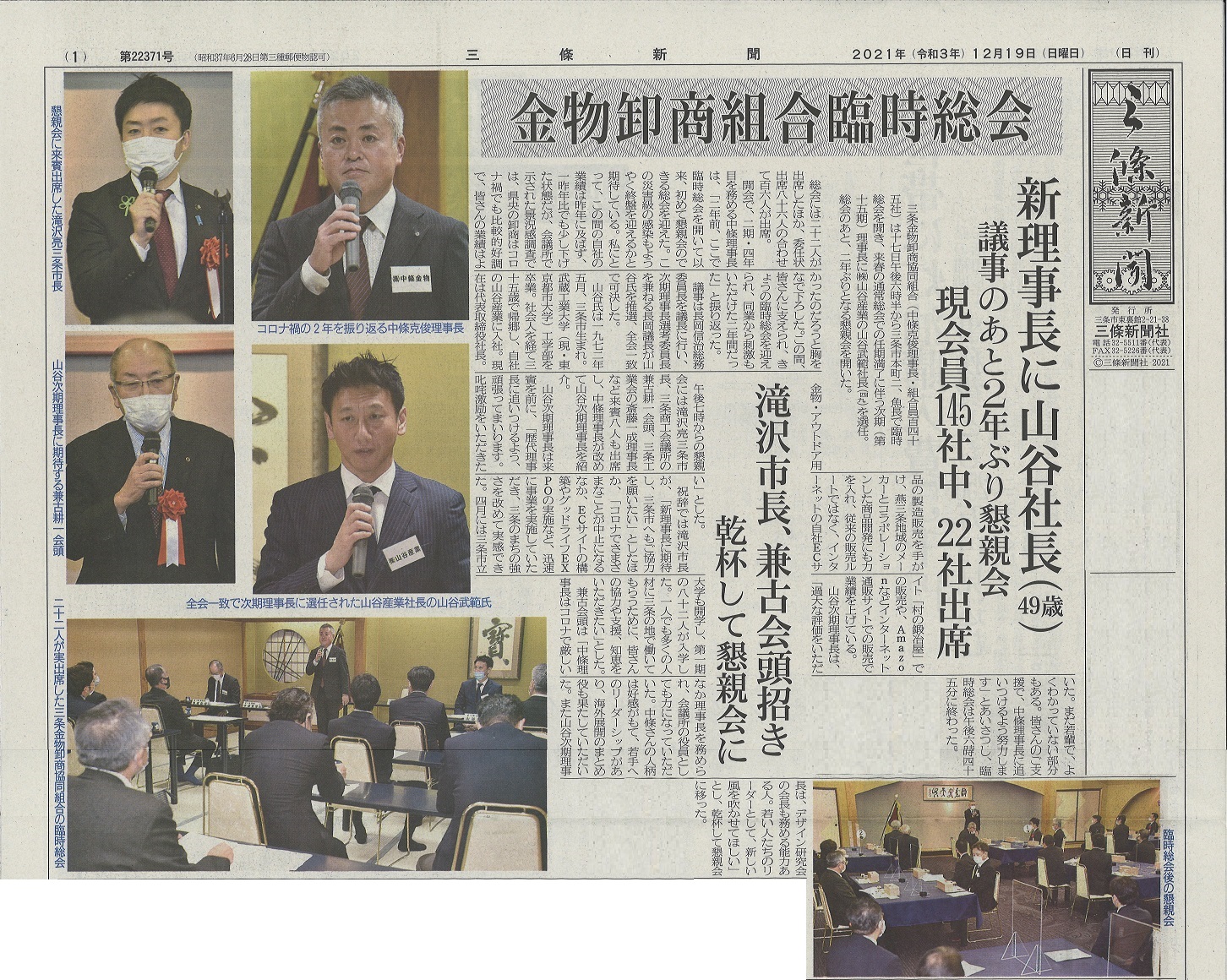 その様子を12月19日(日)付三條新聞の一面に取り上げていただきました。