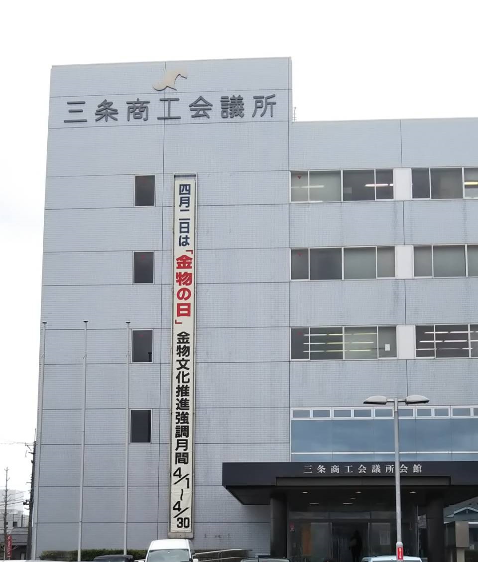 4月といえば「金物の日」です。三条金物卸商協同組合では毎年4月に三条商工会議所において、懸垂幕で「金物の日」をPRしています。組合員の皆様が取り扱っている製品が、より多くの人に愛用されることを願っております。